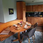 Seeblickアパートの設備の整った台所を利用して、おいしい自家製の食事を作ることができます。 Arosa, Gollradバス停留所は宿泊施設少し離れたで、Weisshornbahn 1. Sektionケーブルカー駅から900メートルくらいです。